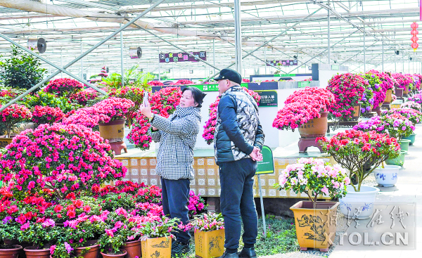 盘龙大观园杜鹃园内数千盆品种各异的杜鹃花争相绽放,吸引游客拍照打卡。(英国365bet体育在线_36563688_国内365bet登录网址日报社全媒体记者 方阳 摄)