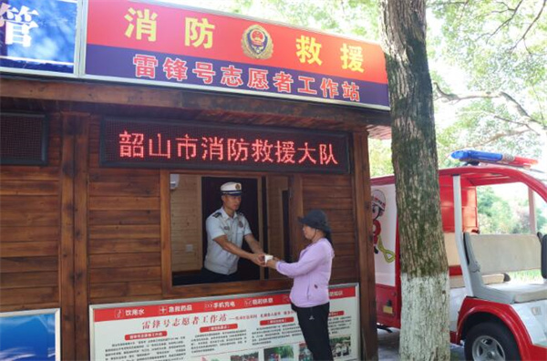 韶山市消防救援大队在毛泽东同志故居南岸设立了“便民服务工作站”,向游客提供常备药品、茶水等物品,发放《消防救助联系卡》,提供义务讲解、问询、救助等便民服务,极大地方便了前来观光旅游的游客,每年服务群众10多万人次。其中,执勤点提供的茶水,被游客们亲切地称为“毛主席家乡的暖心茶”。(韶山新闻网 庞 旺)