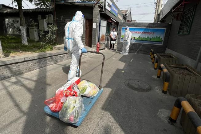 妥善处理生活垃圾同样是平房院封控后控制疫情传播的关键环节,封控区内的生活垃圾由属地街道安排专人上门收运,先集中在暂存点,再由区环卫部门及时清运至专业处理厂。“挨家挨户收运居民的垃圾,进行封口、消杀,随后装入纸箱封闭,并再次消杀箱体,最后转运至垃圾暂存点。”