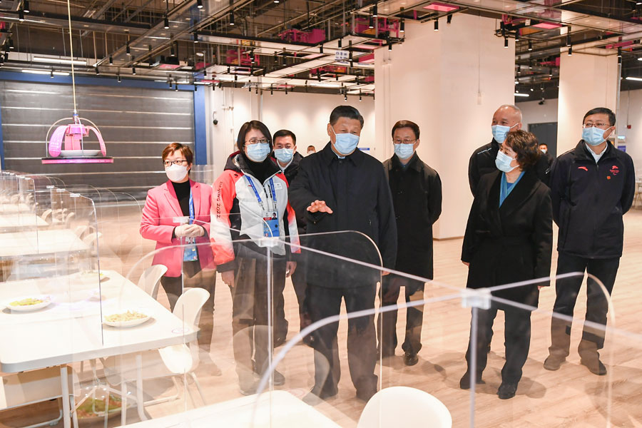 北京冬奥会、冬残奥会主媒体中心毗邻国家速滑馆,赛时将作为全球注册平面媒体和转播商的工作总部。习近平先后走进主新闻发布厅、媒体工作间、智慧餐厅,实地了解中心建设运行、完善防疫措施、打造全流程服务模式,以及赛时信息发布、媒体运行、餐饮服务等情况。在媒体工作间,习近平同正在做准备的媒体记者亲切交流。在智慧餐厅,习近平察看智能餐饮设备运行情况,了解中心加强食品安全监管情况。他强调,北京冬奥会、冬残奥会的主媒体中心,把主新闻中心和国际广播中心整合起来,统筹赛时服务功能和赛后会展功能,做到了绿色办奥、节俭办奥。他指出,对北京冬奥会、冬残奥会来讲,做好新冠肺炎疫情防控工作是最大的考验。受疫情影响,北京冬奥会、冬残奥会现场观赛受到很大限制,新闻传播比往届更加重要。主媒体中心要做好各项运行、服务、保障工作,既要保障好各项新闻报道和传输转播功能的安全运行,又要确保疫情防控安全。要严格落实“双闭环”管理,完善场馆防疫措施,尽最大努力防止疫情发生。要把食品安全放在第一位,越是智能化,越要注重源头把控,确保万无一失。他希望国内外媒体和记者深入报道,讲好各国奥运健儿激情拼搏的故事,讲好中国筹办北京冬奥会、冬残奥会的故事,讲好中国人民热情好客的故事,全面、立体、生动地把北京冬奥盛会传到全世界。