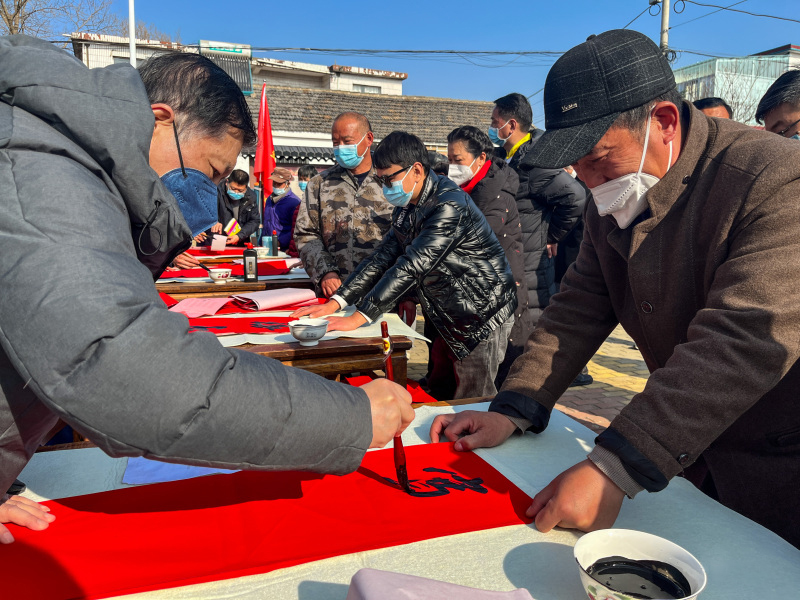 活动现场,书法名家为村民写新春对联。