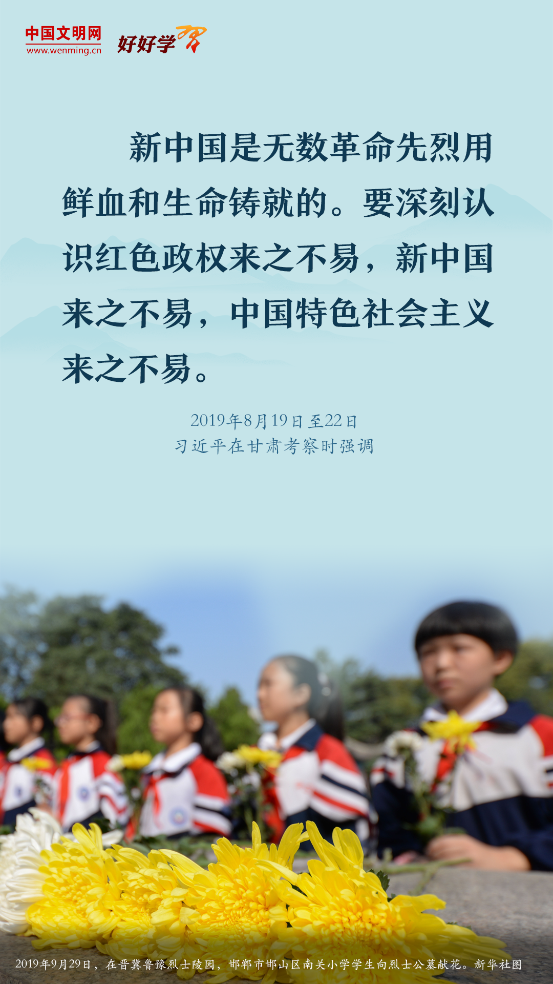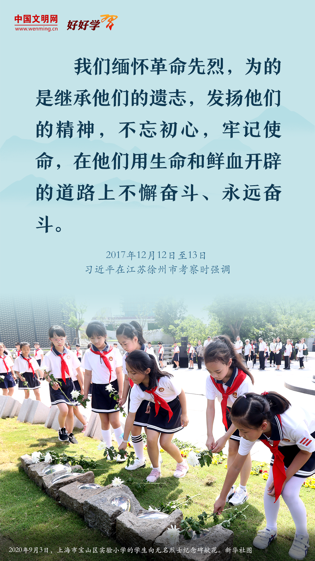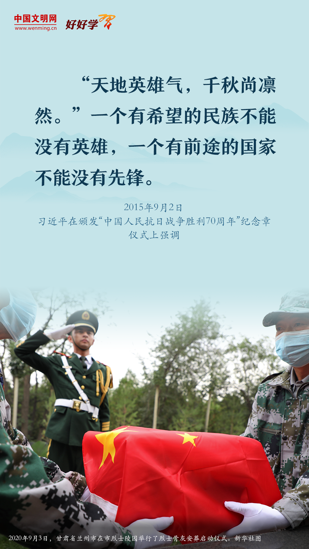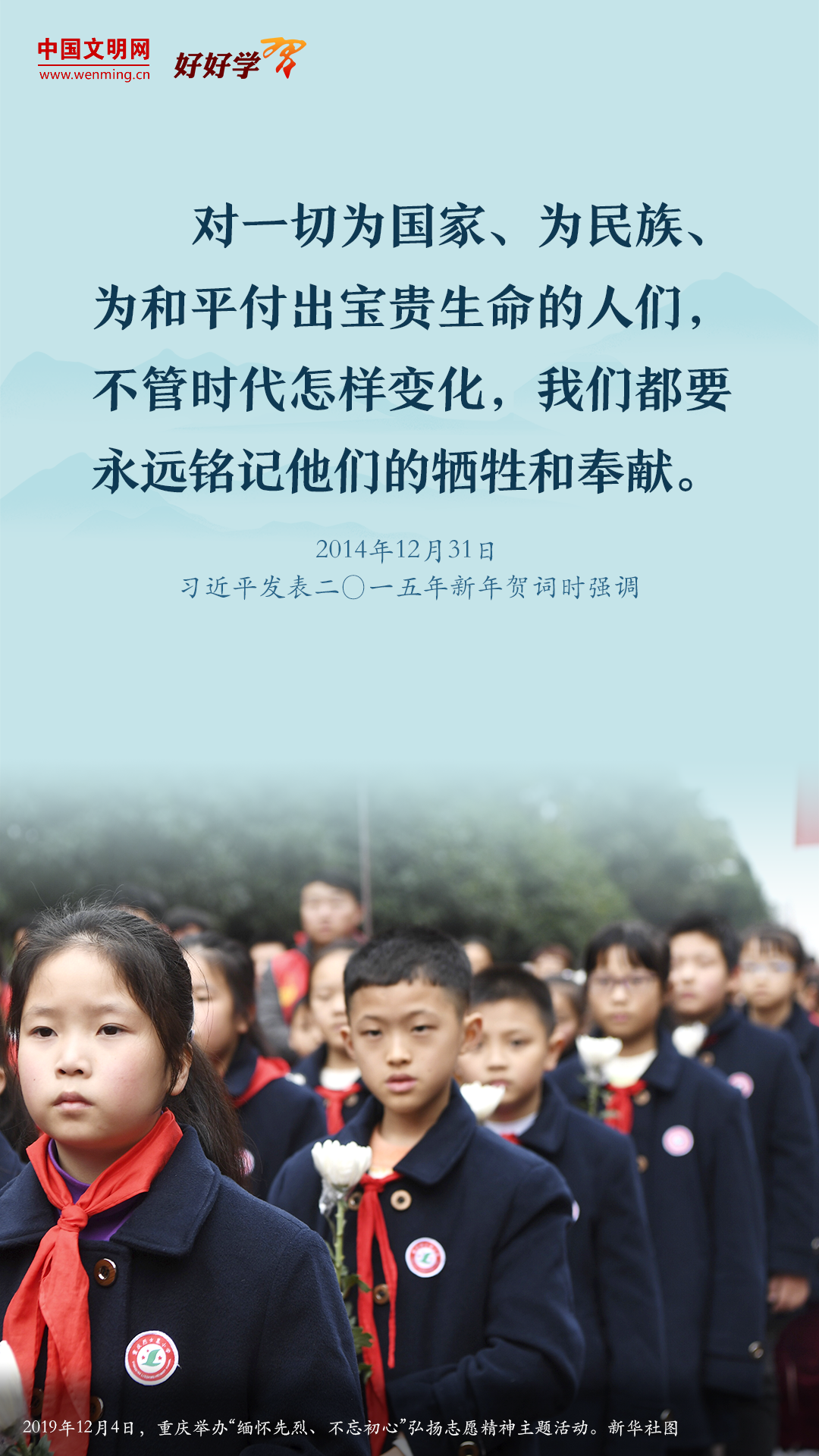 “一个有希望的民族不能没有英雄,一个有前途的国家不能没有先锋。”2020年9月30日是第7个国家烈士纪念日。让我们一起来重温习近平总书记的重要讲话精神,铭记烈士们遗愿,汲取奋发力量,共同为推进中国特色社会主义伟大事业、实现中华民族伟大复兴的中国梦而顽强奋斗、艰苦奋斗、不懈奋斗。