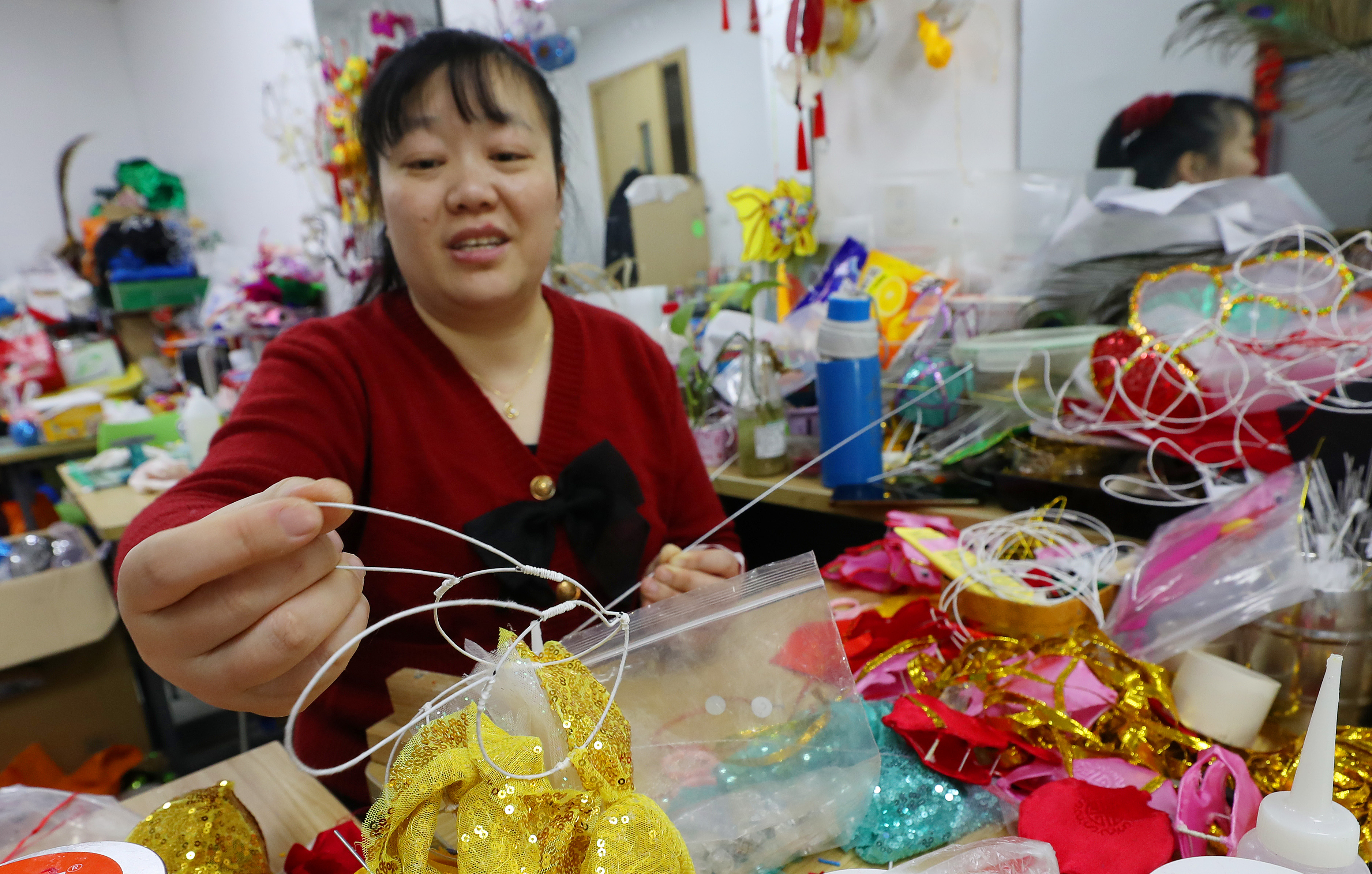 2月1日,龚智瑜在工作室准备兔子灯骨架。新华社记者 方喆 摄