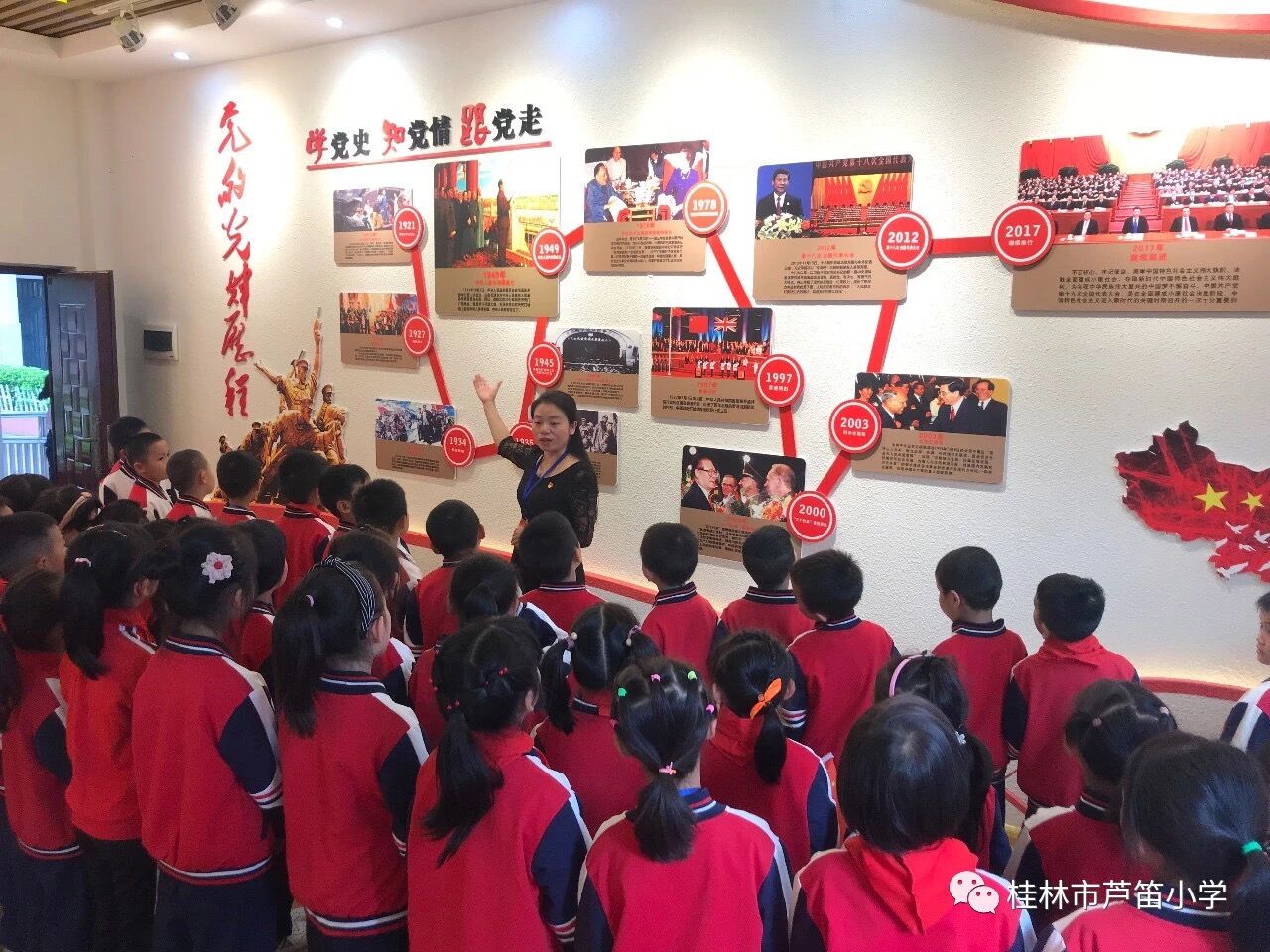 桂林市芦笛小学,始建于1964年,现有37个教学班,在校学生1800多人。学校紧紧围绕立德树人的根本任务,以社会主义核心价值观为核心,以“红色教育”为抓手,将文明校园创建工作与思想道德建设相融合,与课程教学相融合,与书香阅读相结合,与实践活动相融合,引导学生“扣好人生第一粒扣子”。