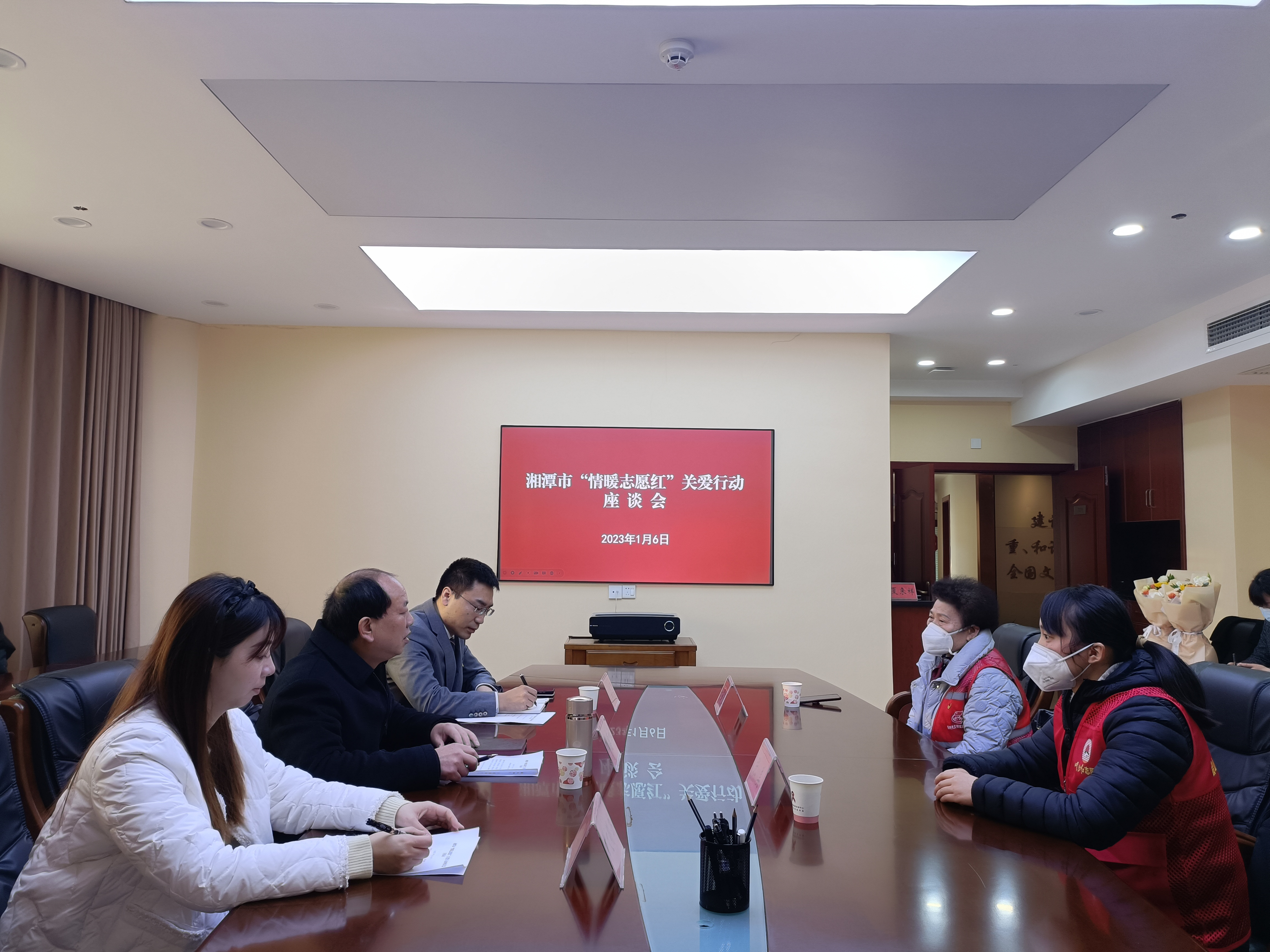 1月6日,受省文明办、省志工办委托,英国365bet体育在线_36563688_国内365bet登录网址市文明办、爱心单位财信吉祥人寿相关负责人一行组织开展“情暖志愿红”关爱行动座谈会,为优秀志愿者代表方翠兰、张美送上鲜花和慰问金,向她们致以崇高的敬意和真诚的感谢。
